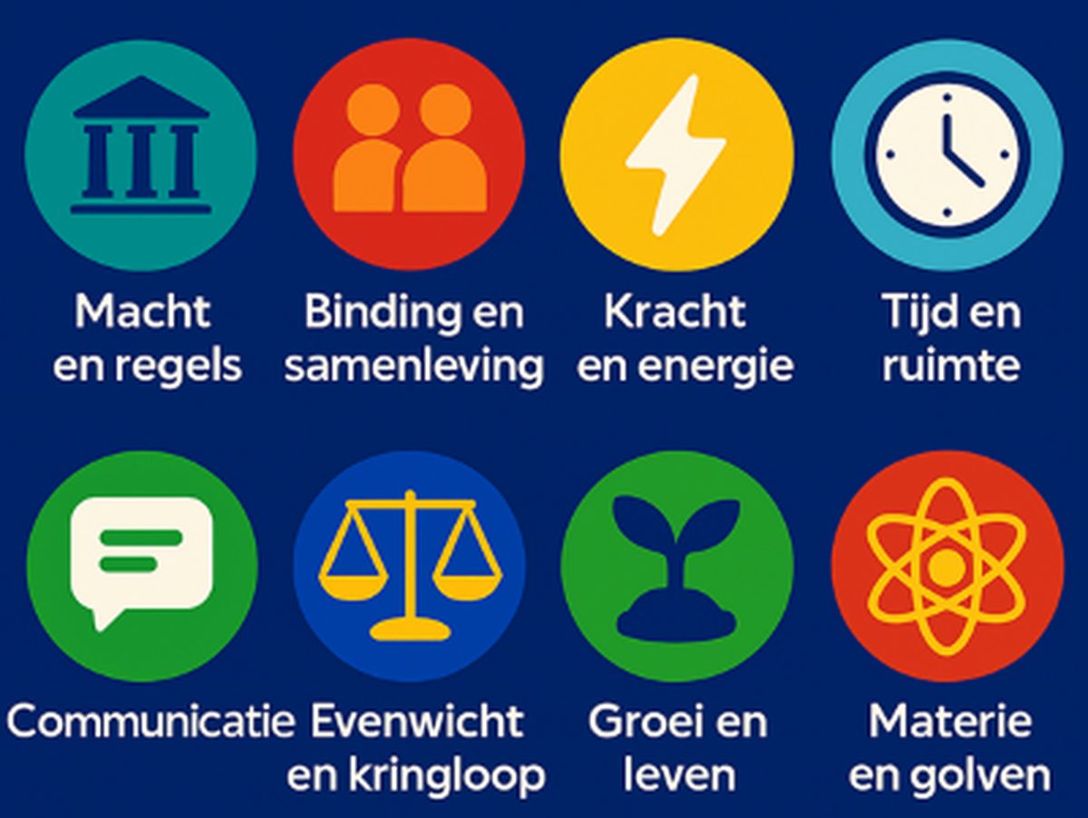 Bij onze kindercampus hebben we de lessen die gegeven worden geclusterd in acht thema’s oftewel kernconcepten uit de wereld om ons heen. Die kernconcepten vormen de paraplu voor alles wat er geleerd moet worden op school.